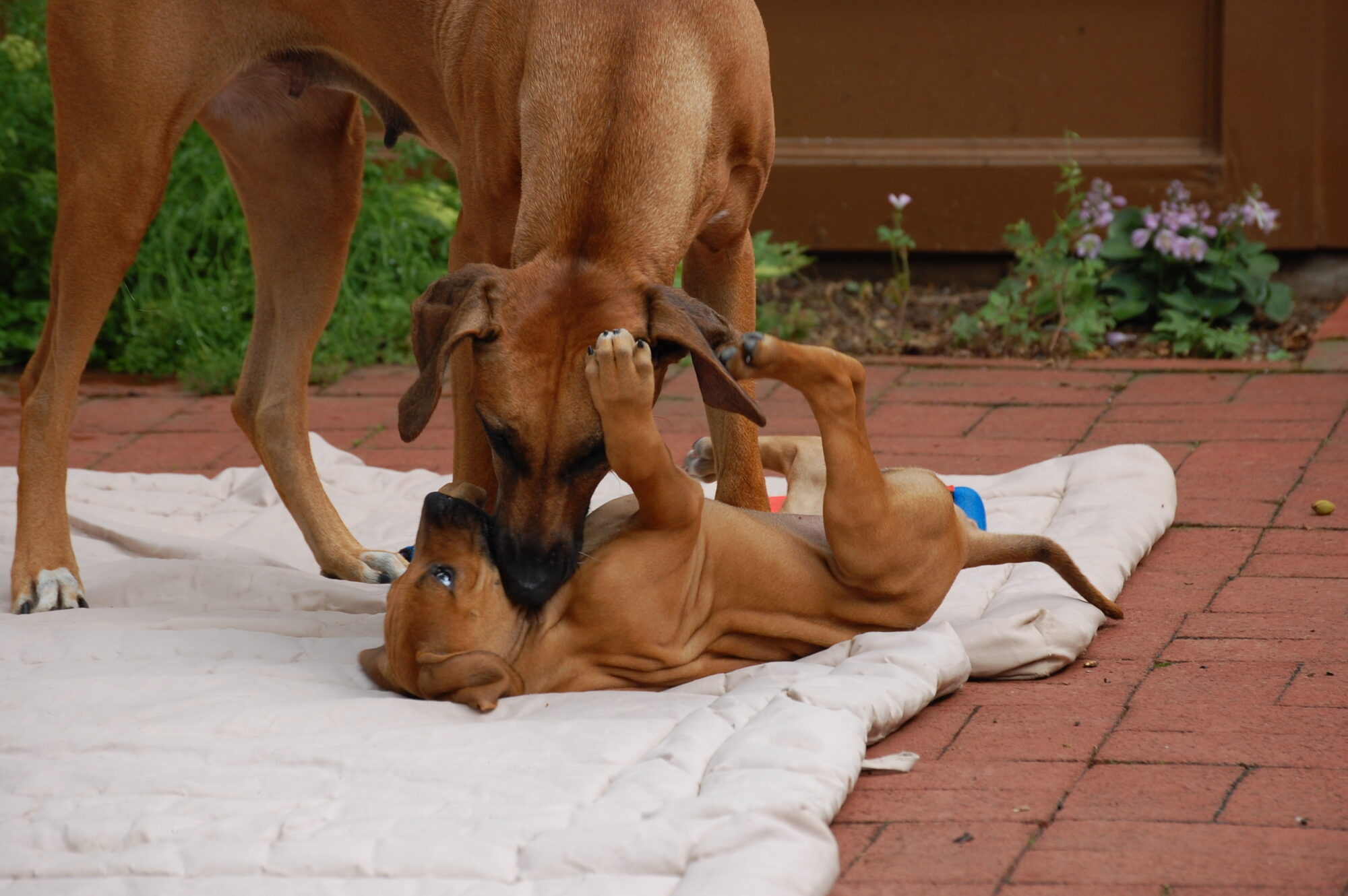 Below are pictures of our Lovey, who was the dam of our 2018 litter! Lovey finished her conformation championship with four majors, owner-handled. She lives up to her name in every way, the sweetest RR girl we know. Lovey was bred by Jay Hyman, Rollings Rhodesian Ridgebacks. We are proud of her as a beautiful representative of the breed in temperament, conformation and as a companion. Continue to scroll down to see pictures of our previous litters. Julie and Doug are AKC Breeders of Merit.
